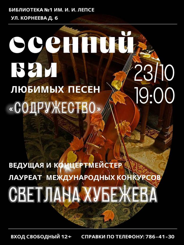 В Библиотеке №1 имени И. И. Лепсе состоится Осенний бал любимых песен "Содружество".