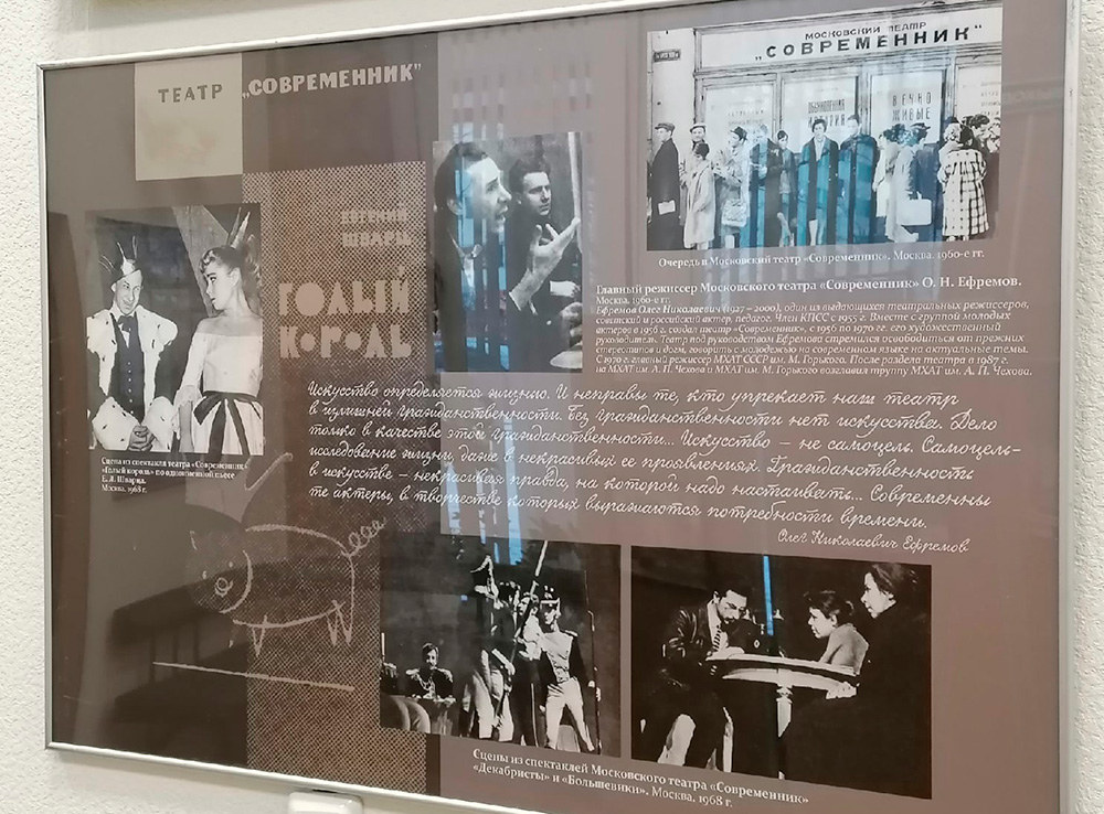 Фотографии, афиши спектаклей, фрагменты рецензий и отзывов зрителей покажут, как театр влиял на мировоззрение и нравственные установки советского человека.