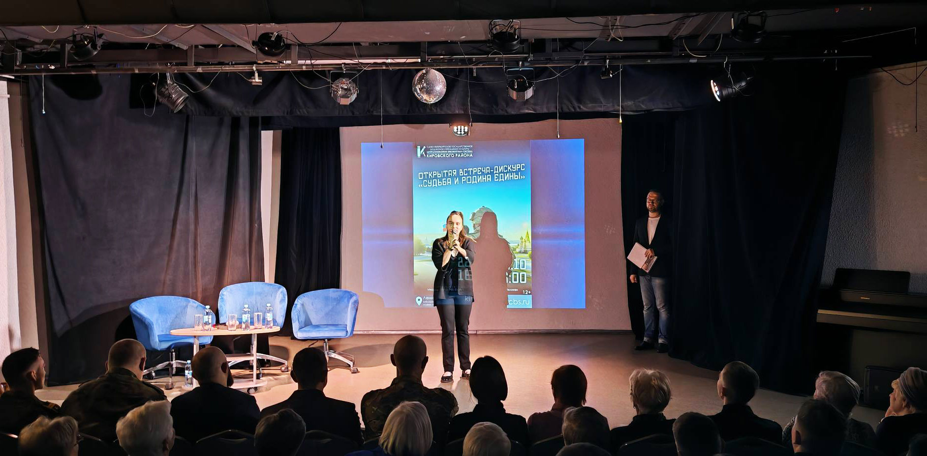 28 октября в Библиотечно-культурном комплексе им. А. В. Молчанова состоялась очередная встреча в рамках патриотического проекта "Открытые встречи-дискурсы "Судьба и Родина едины". Проект организован Советом ветеранов Кировского района Санкт-Петербурга, Централизованной библиотечной системой Кировского района и Региональной общественной организацией "Ассоциация Ветеранов Специальной Военной Операции "Защитники Родины" г. Санкт-Петербурга.