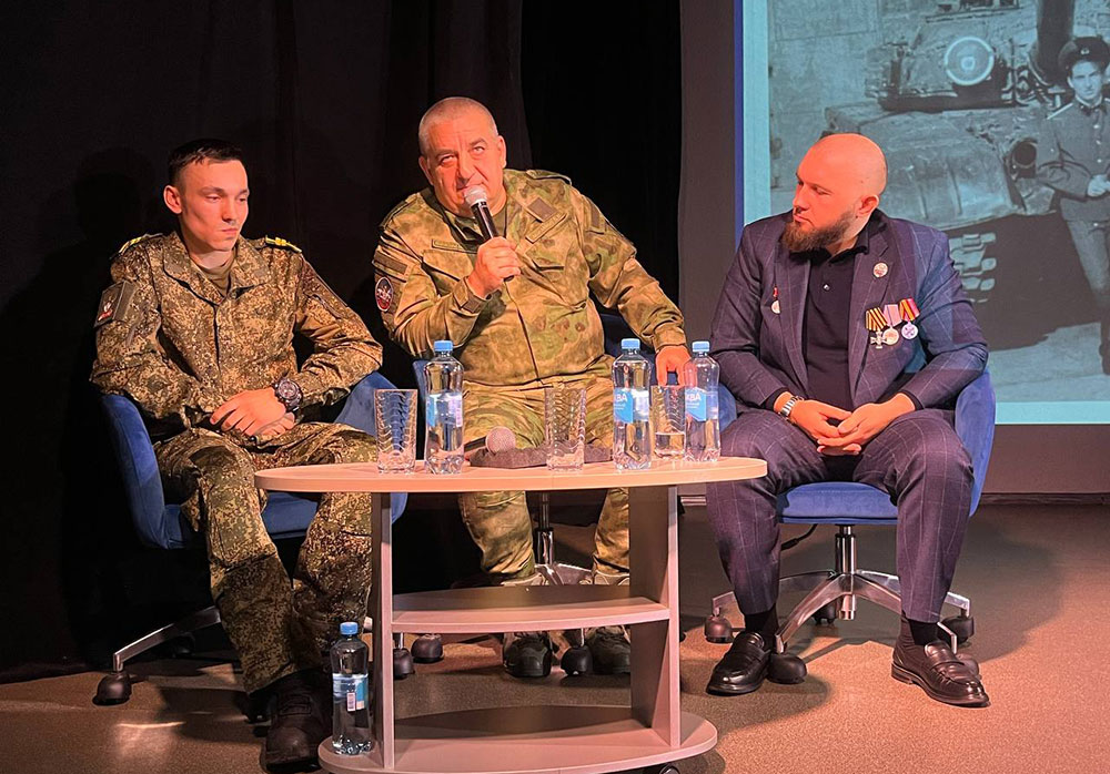 Центральной частью вечера стали откровенные рассказы непосредственных участников специальной военной операции - Сергея Алексеевича Онищенко, Дмитрия Владимировича Абрамова и Даниила Сергеевича Тихонова. Спикеры делились с аудиторией личными историями, говорили о непростых бытовых условиях и о тех сложнейших ситуациях, которые им пришлось пережить. Они вспоминали о настоящих подвигах своих сослуживцев, а их рассказы о боевых машинах, танках и самоходках были наполнены не сухими техническими подробностями, а живым опытом человека, который управлял и ремонтировал эту технику в боевой обстановке. Из зала звучали вопросы - о полученных наградах, о необходимых навыках для управления и ремонта машин, и, конечно, слова искренней благодарности за их мужество и самоотверженность.