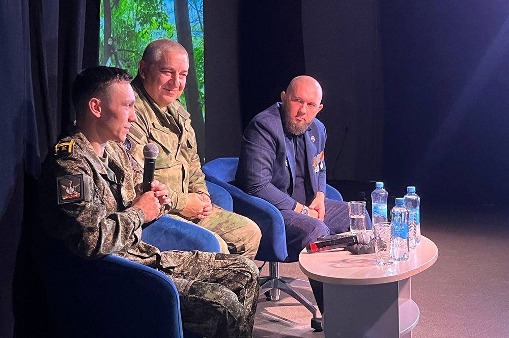 Завершилась вечер ярким и патриотичным выступлением актрисы театра и кино Юлии Абраровой, чье проникновенное чтение стихов о Родине и долге стало мощным эмоциональным аккордом всей встречи.