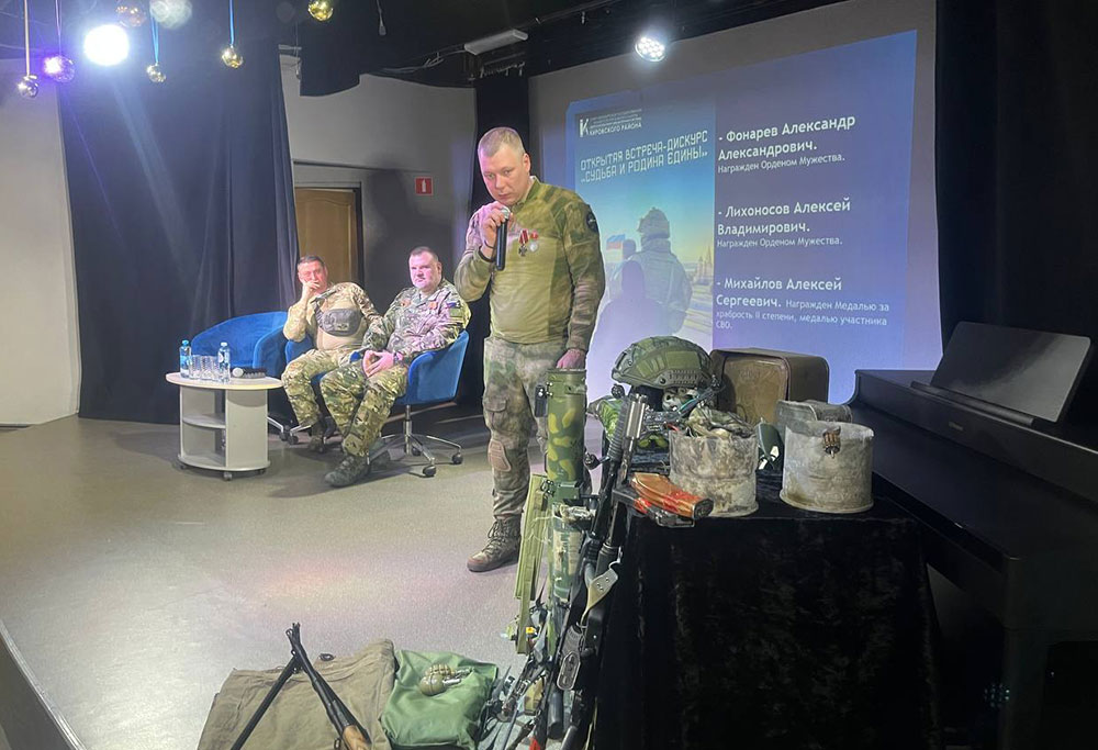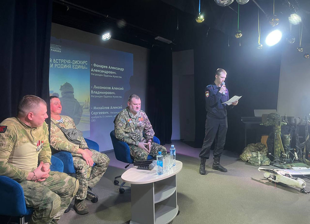 Центральной частью вечера стали выступления непосредственных участников СВО. Своими историями поделились ветераны спецоперации: Александр Александрович Фонарев (кавалер Ордена Мужества), Алексей Владимирович Лихоносов (кавалер Ордена Мужества) и Алексей Сергеевич Михайлов (награжденный Медалью за храбрость II степени).
