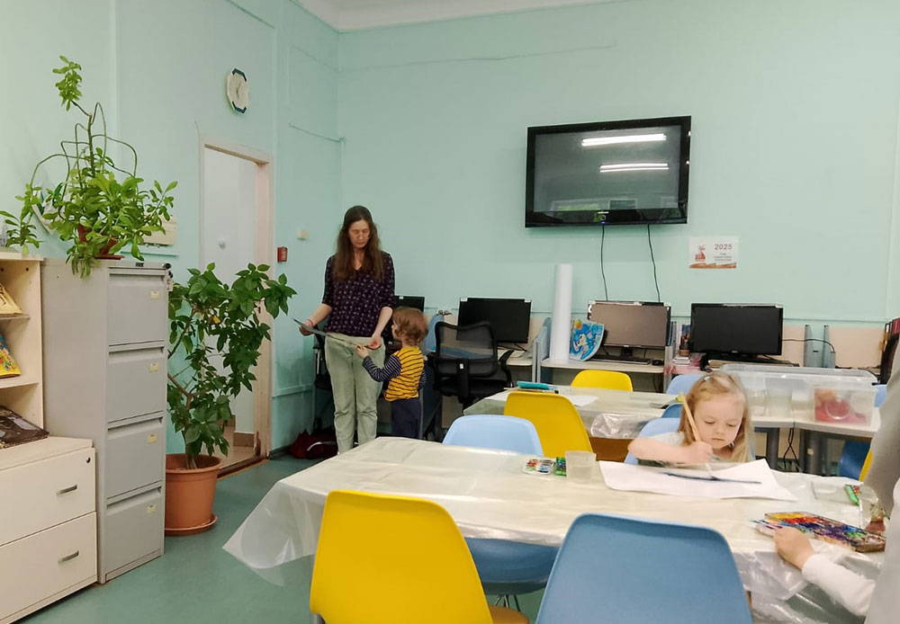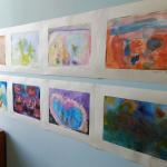 Сначала юные читатели, а по совместительству, и художники рисовали свои картины, пытаясь изобразить на холстах то, что их больше всего на данный момент интересует. Затем мы взяли бразды правления в свои руки и оформили работы юных живописцев. И затем уже открыли выставку!