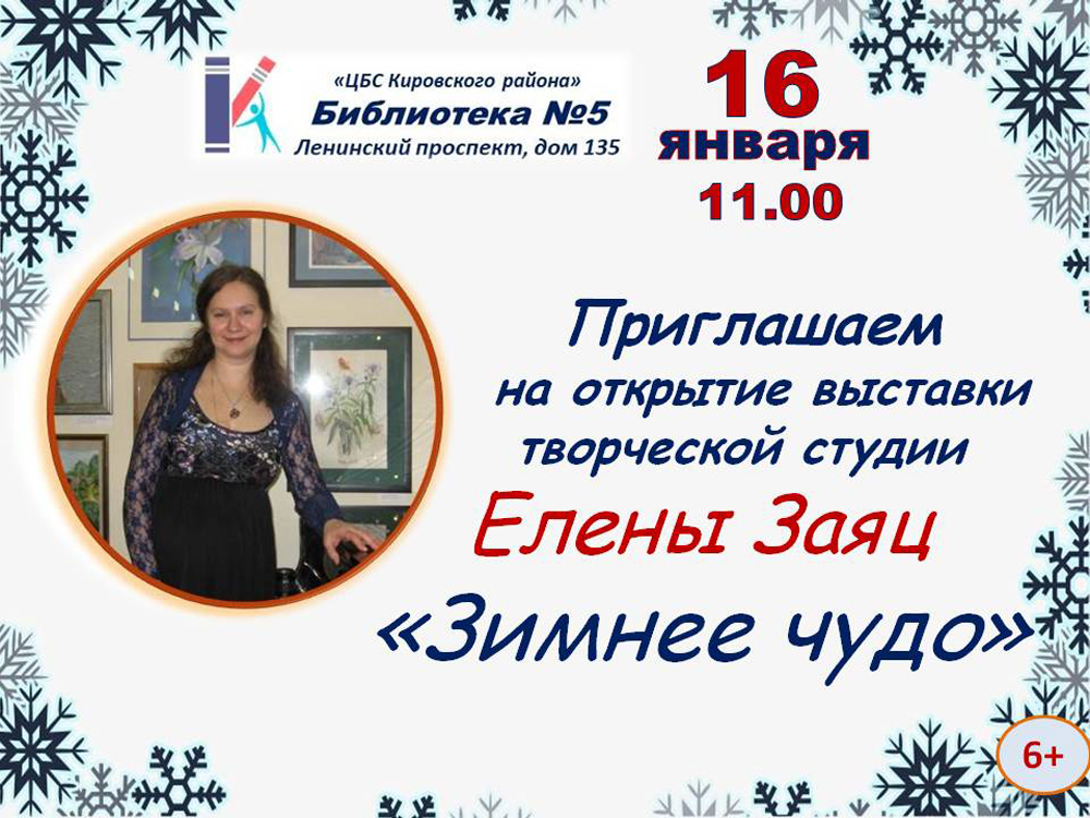 В библиотеке состоится Открытие выставки художественных работ творческой студии Елены Заяц "Зимнее чудо".