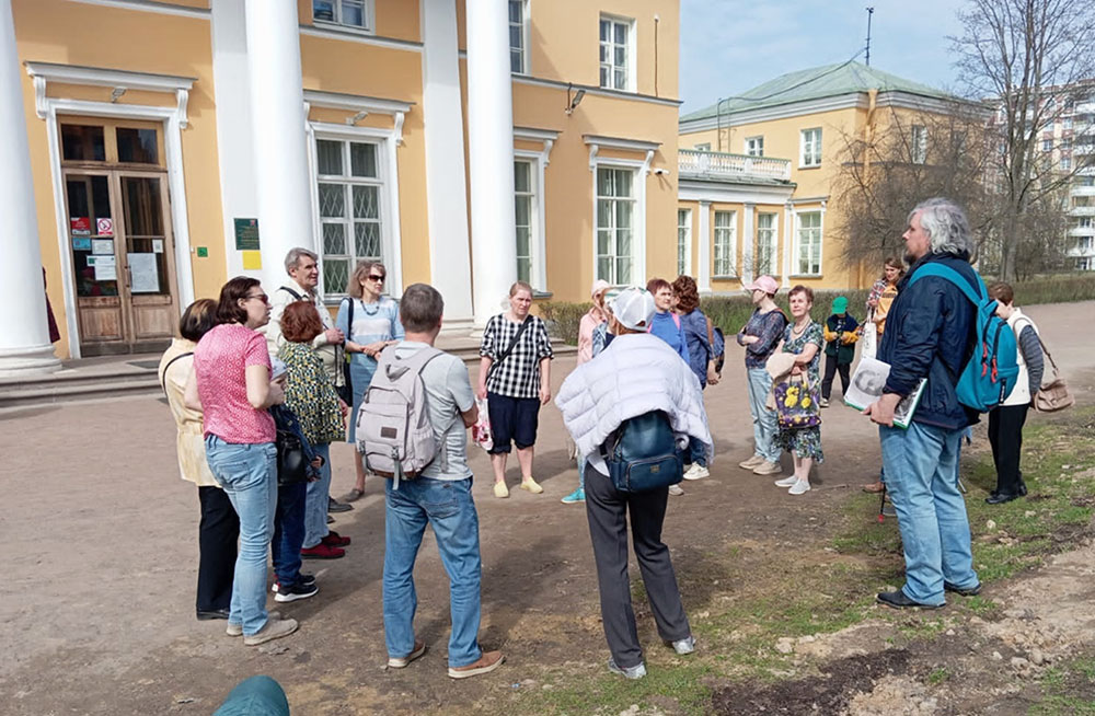 В ходе прогулки посетители познакомились с ландшафтом и природными особенностями парка. Узнали историю первых владельцев, а также познакомились со зданием усадьбы, построенной графом Иваном Григорьевичем Чернышевым. У живописного пруда архитектор Жан-Батист Вален - Деламот построил усадьбу, которая существует и в наше время. Здесь дважды бывала императрица Екатерина Великая.