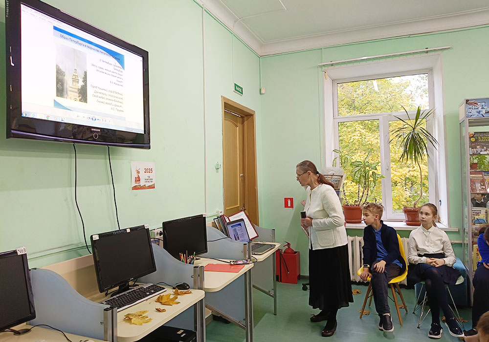 В информационной презентации "Петербургские поэты Серебряного века" мы вспомнили о Г. Иванове, А. Белом, З. Гиппиус, М. Волошине, А. Блоке, О. Мандельштаме. Во время викторины "Литературный Петербург" дети попытались по отрывкам известных стихов назвать автора.