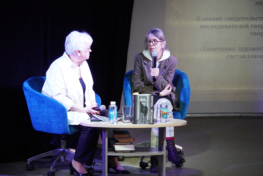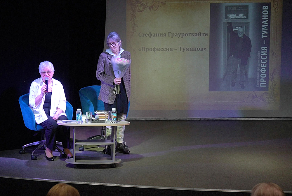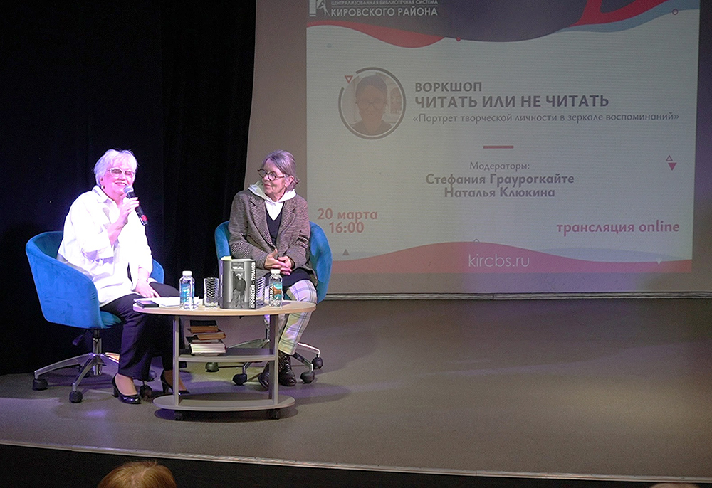 В рамках воркшопа Стефания Граурогкайте поделилась своими размышлениями о значении субъективного взгляда автора-мемуариста на личность героя. В ходе встречи она затронула важные аспекты формирования портрета личности и творчества, а также рассказала о своей книге "Профессия - Туманов", посвященной ее супругу, выдающемуся режиссеру Владимиру Туманову.