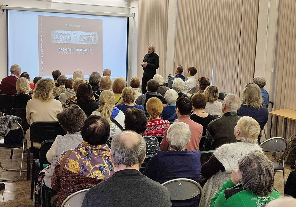 8 февраля в ЦРБ имени М. Шолохова прошла презентация книги А. Ю. Алексеева "Проспект Ветеранов и его окрестности". Встреча прошла в рамках проекта ЦРБ "Новые книги о Петербурге". Вышедшую книгу представили директор издательства "Серебряный век" - Владимир Владимирович Уржумцев и автор, краевед и эксперт сектора топонимической деятельности СПб ГБУДПО "Институт культурных программ" - Алексей Юрьевич Алексеев.