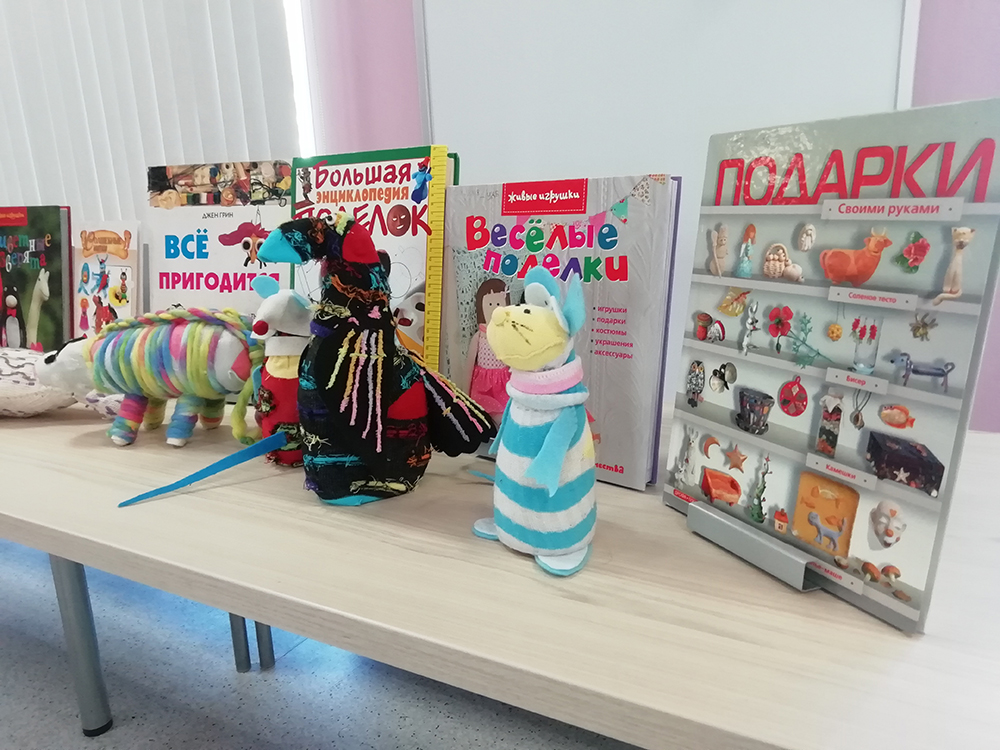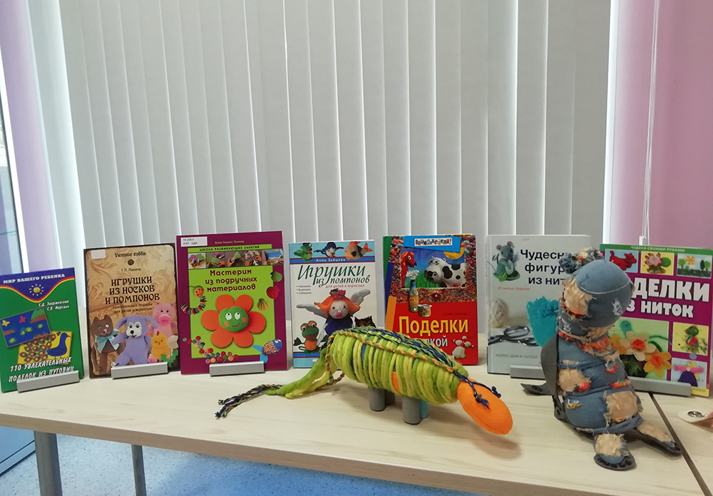 Участники выставки творческих работ из подручных материалов - воспитанники студии прикладного творчества "Очаг" ПМК "Лени Голикова" и студии "Творчество" при СОШ №240 под руководством Ирины Алексеевны Тхай познакомились с необычными поделками из привычных вещей и материалов и прослушали книжный обзор "Поделки из разных материалов".
