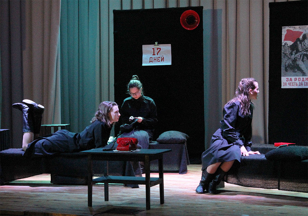 Образцовый театр народных традиций "Потешник" Центра дополнительного образования / ЭВРИКА из Минска, который второй год подряд участвует в нашем фестивале, изменил в названии своего спектакля всего две буквы - "Это, девочки, война", в результате пьеса стала ближе юным исполнителям. Всего четыре женских роли. Действие в одной комнате. Но сюжет - это не более чем рамка, внутри которой разворачиваются трагические события.