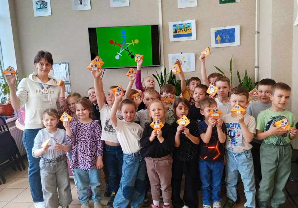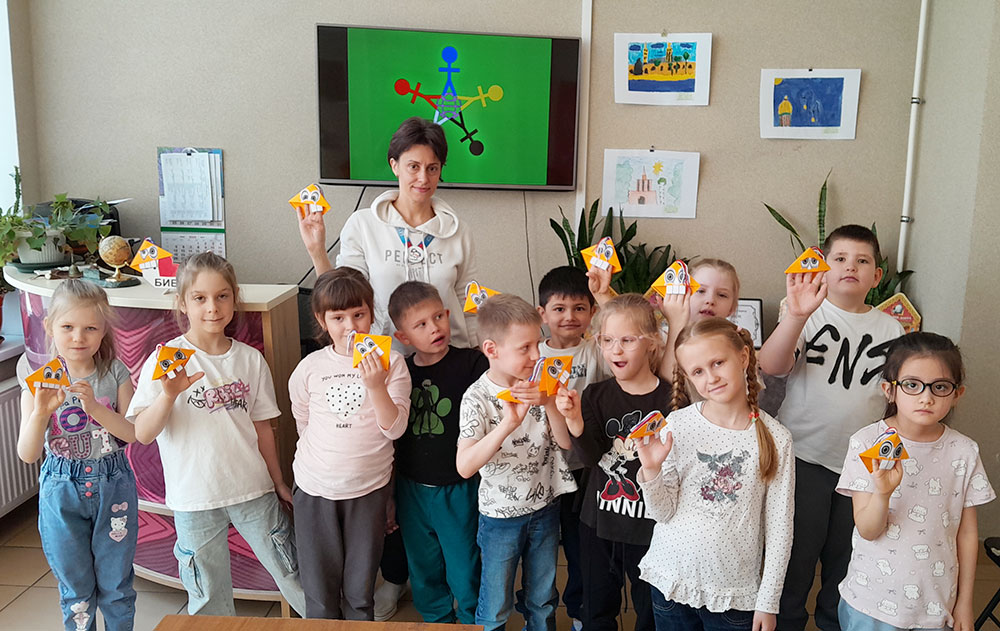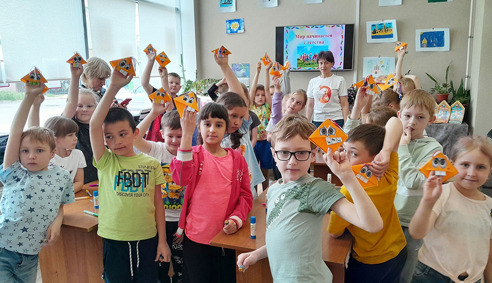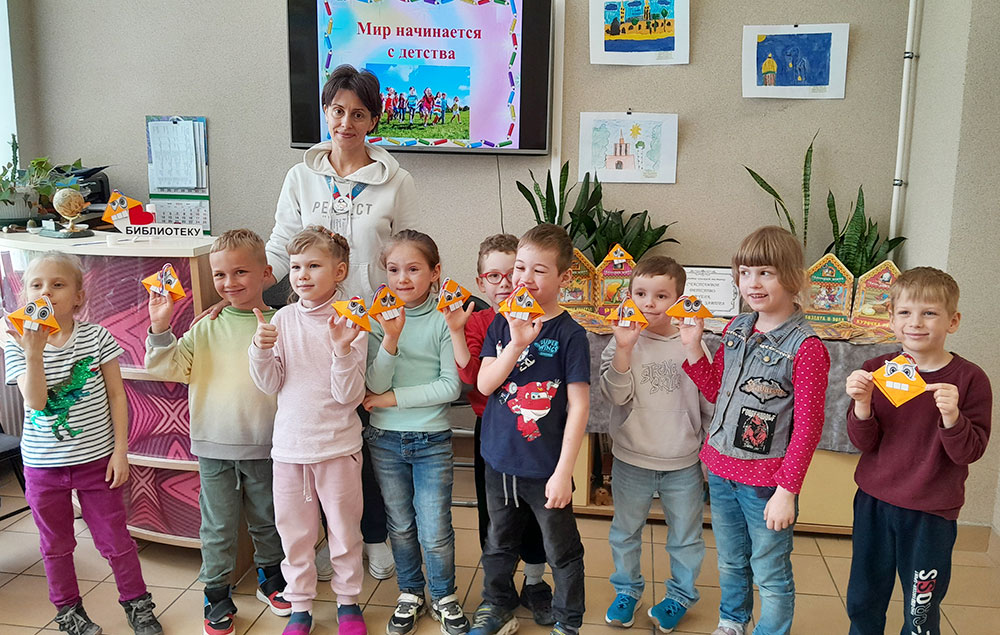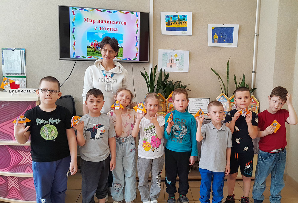 Читателей и юных гостей библиотеки ожидала увлекательная информационная презентация "Мир начинается с детства". Все желающие смогли принять участие в творческой игре "Фантазеры", в рамках которой смастерили книжную закладку - Чудика из бумаги с помощью техники оригами.