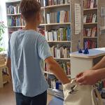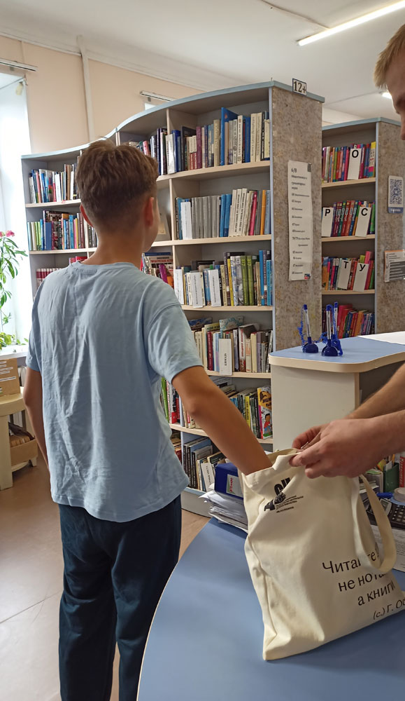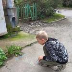 Некоторые активные читатели захотели порезвиться на свежем воздухе, где для них были предусмотрены рисование на асфальте, пускание мыльных пузырей и небольшие призы. Всем, пришедшим в библиотеку, было предложено поучаствовать в библио-ассорти "Книжный кот в мешке".