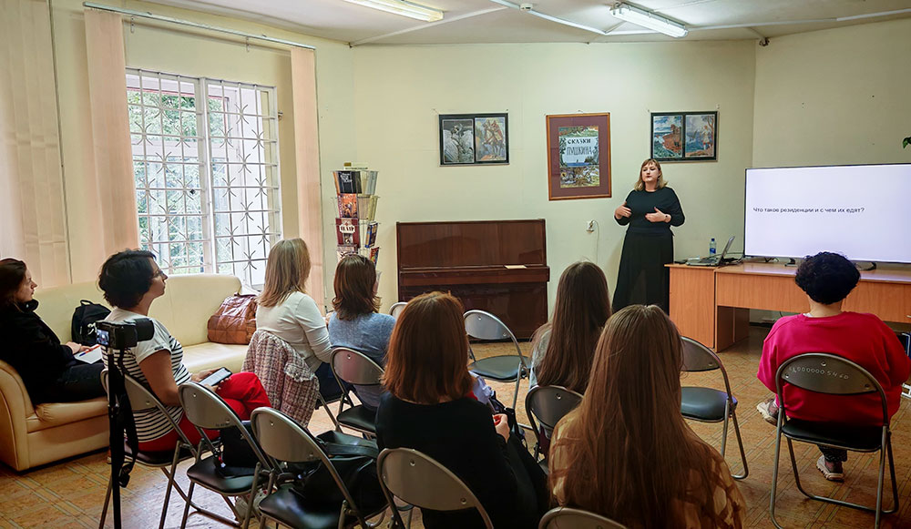21 июня в 14.00 в Библиотечно-культурном комплексе им. А. В. Молчанова, Ленинский проспект, 115, прошла лекция драматурга и писателя Валерии Темкиной, которая поделилась своим опытом и знаниями о творческих резиденциях в России и за ее пределами. Тема лекции: "Резиденции для творческих людей в России и не только: пакет документов, заявка, результаты".