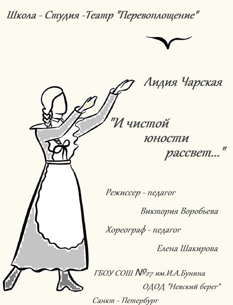 "Театр-студия "Перевоплощение" под руководством талантливого режиссёра и педагога Виктории Воробьёвой представит спектакль по рассказам Лидии Чарской "И чистой юности рассвет", удостоенный Гран-при литературно-театрального Фестиваля "Путешествие маленького принца".