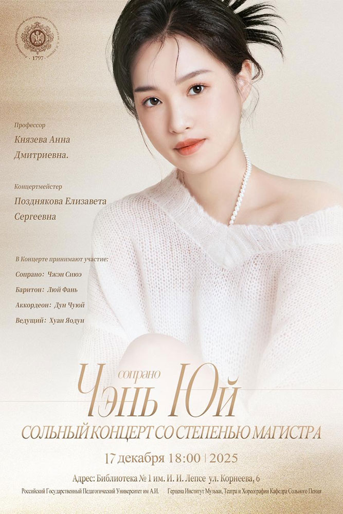В Библиотеке №1 имени И. Лепсе пройдет Сольный концерт со степенью магистра сопрано Чэнь Юй.