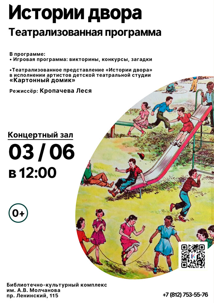 3 июня в 12.00 в Концертном зале Библиотечно-культурного комплекса им. А. В. Молчанова (Ленинский пр., д. 115) состоится Театрализованная программа "Истории двора".