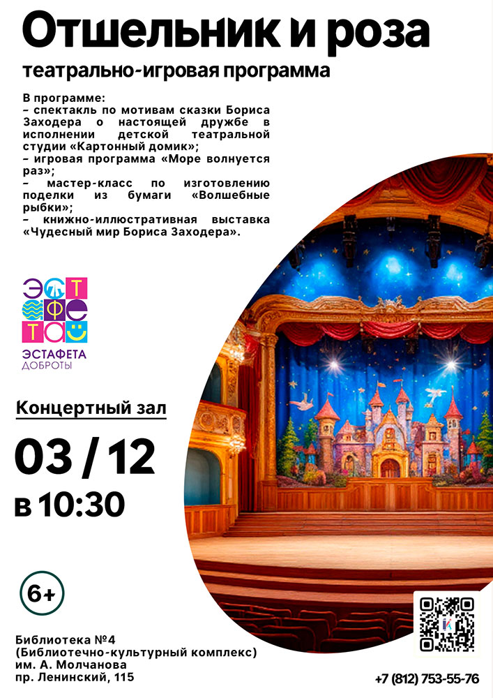 3 декабря в 10.30 в Концертном зале Библиотеки №4 (Библиотечно-культурного комплекса) им. А. Молчанова (Ленинский пр., д. 115) состоится Театрально-игровая программа "Отшельник и роза".