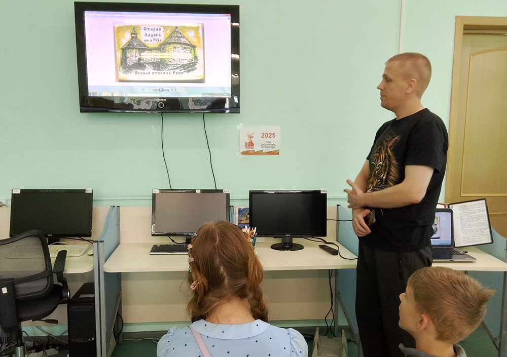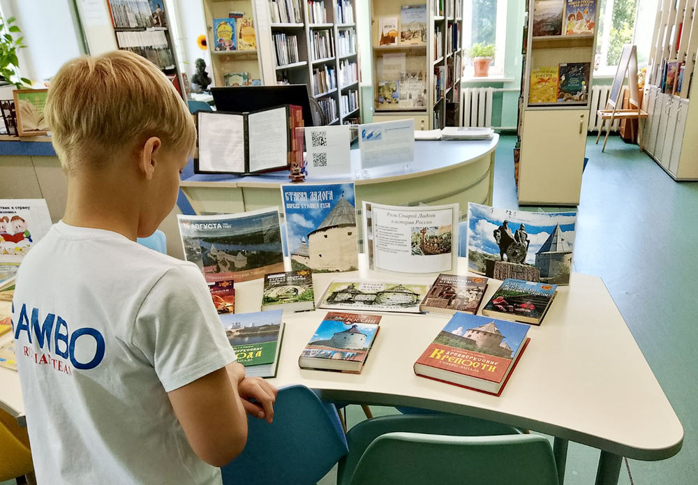 Ко Дню Старой Ладоги Библиотека №8 приготовила Тематическую программу "Был город древний…". Все желающие, которые пришли в библиотеку 15 августа 2025 года, смогли посмотреть отрывки из документального фильма "Спасенные фрески Старой Ладоги", а также посетить книжную выставку "К истокам Руси".