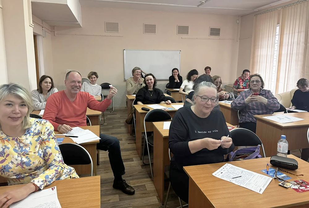 Перед началом написания диктанта, по сложившейся традиции, участники смогли посмотреть юмористический выпуск программы "Хобости". Это новости на букву "Ха" о Тотальном диктанте. Затем заполнили бланки и приступили к написанию текста. На проверку было сдано 18 работ.
