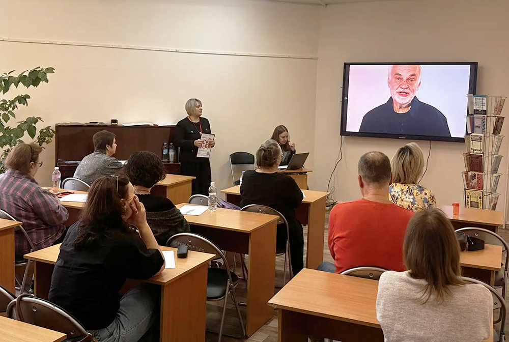 В нашей библиотеке текст читала заведующий нотно-музыкальным отделом, профессиональный филолог, Почетный работник общего образования Российской Федерации - Зоя Владимировна Быстрова.