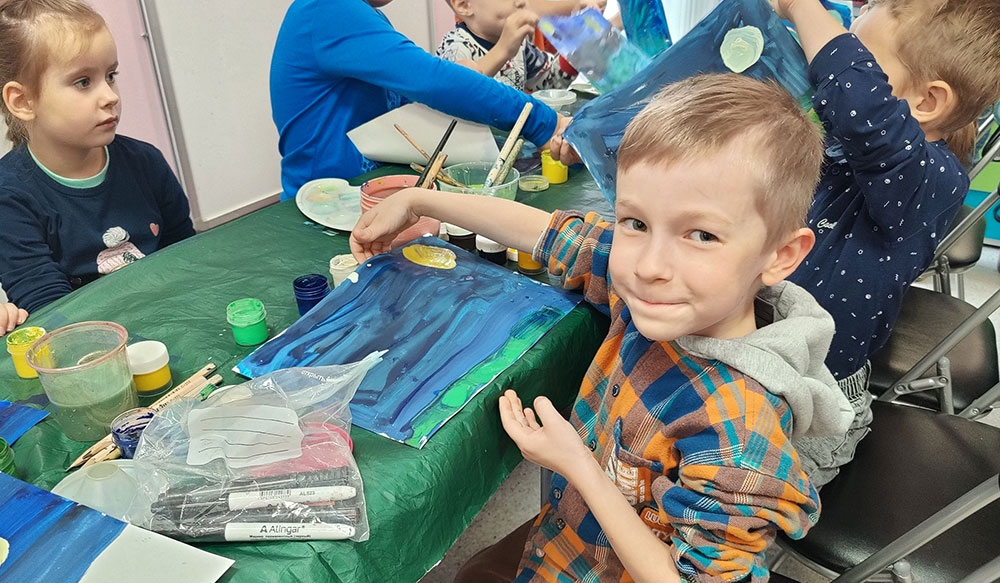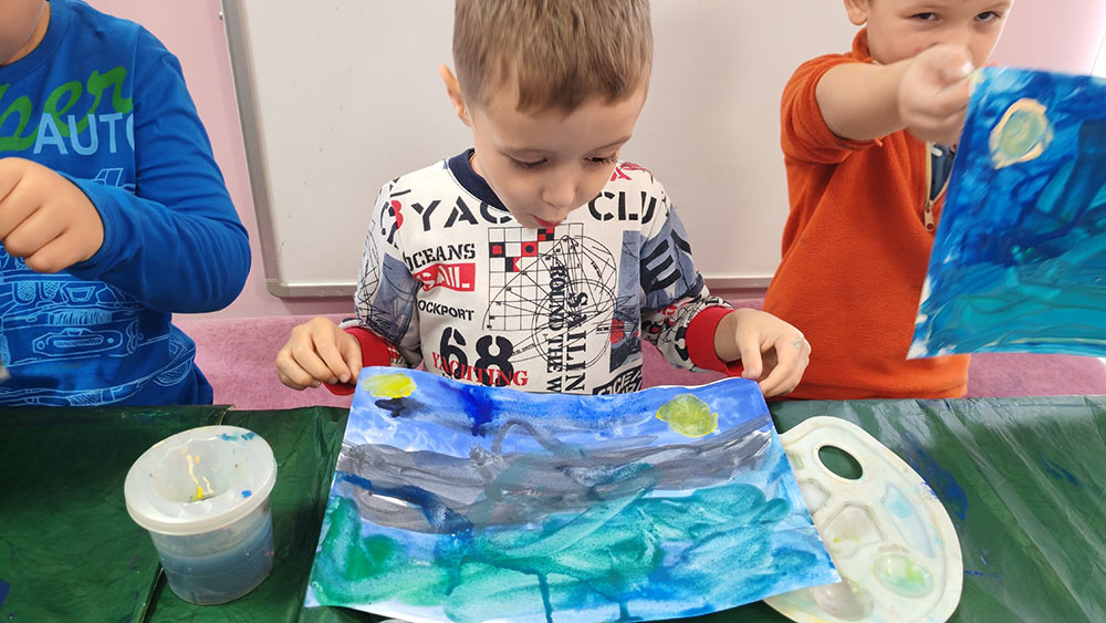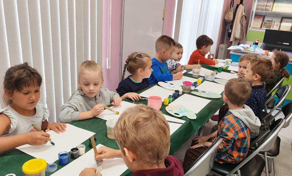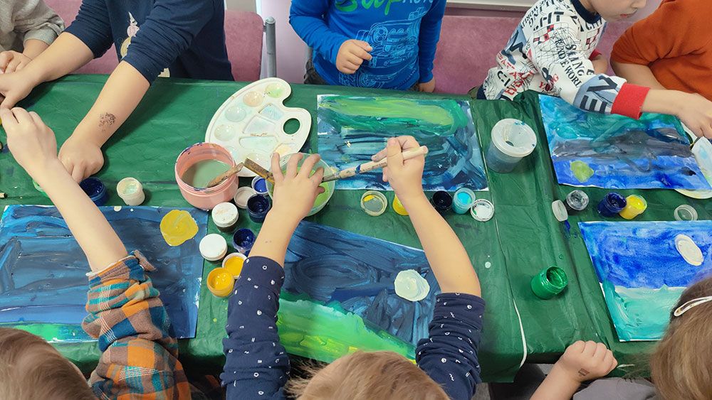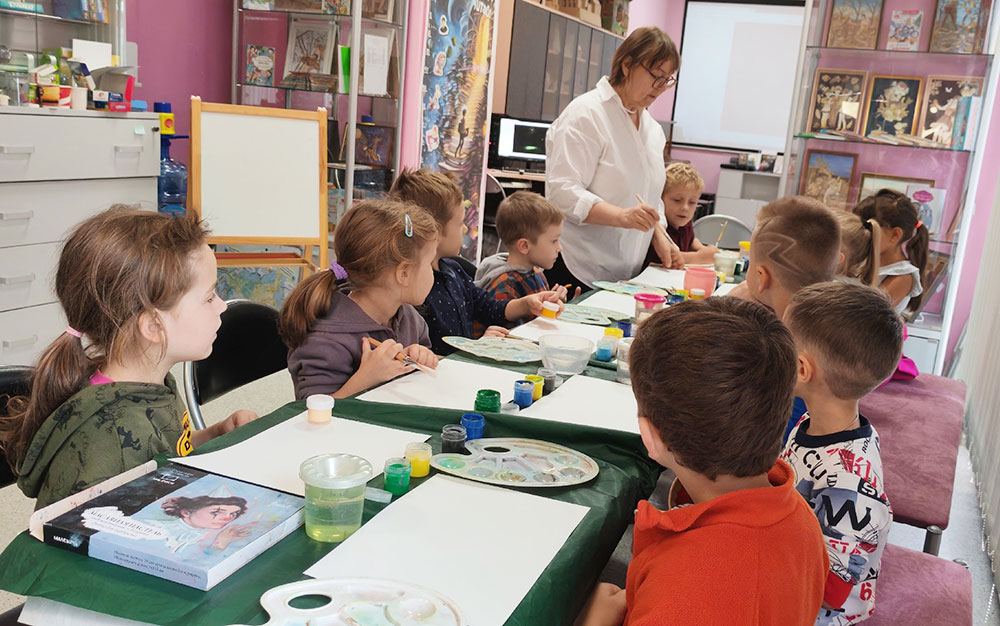 Далее состоялся обзор книжной выставки "Архип Куинджи - уроженец Мариуполя". Закончилась творческая мастерская мастер-классом по рисованию пейзажа гуашью.