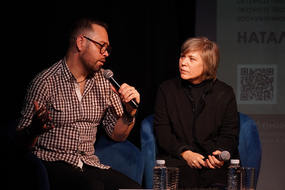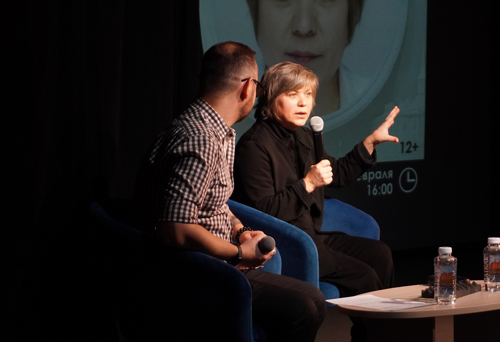 На творческой встрече были показаны фрагменты из веб-сериала "Страшный сон актрисы Марыськиной" и сериала "Судьи и судьбы".