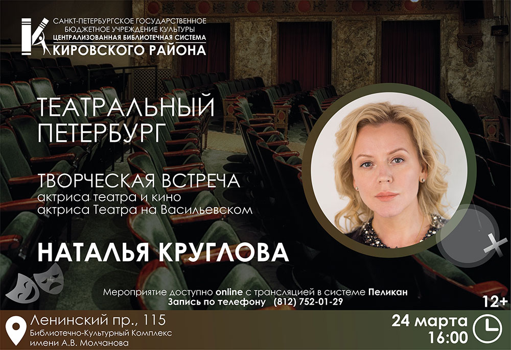 Творческая встреча с актрисой театра и кино, актрисой Театра на Васильевском Натальей Владимировной Кругловой (12+)