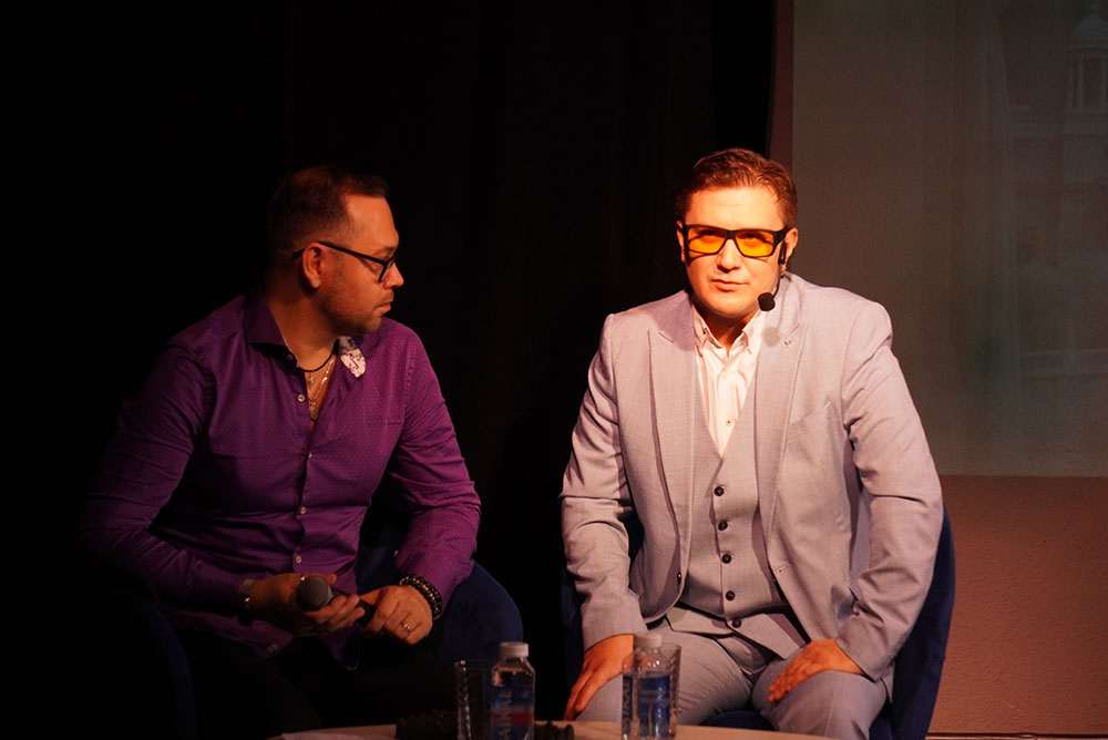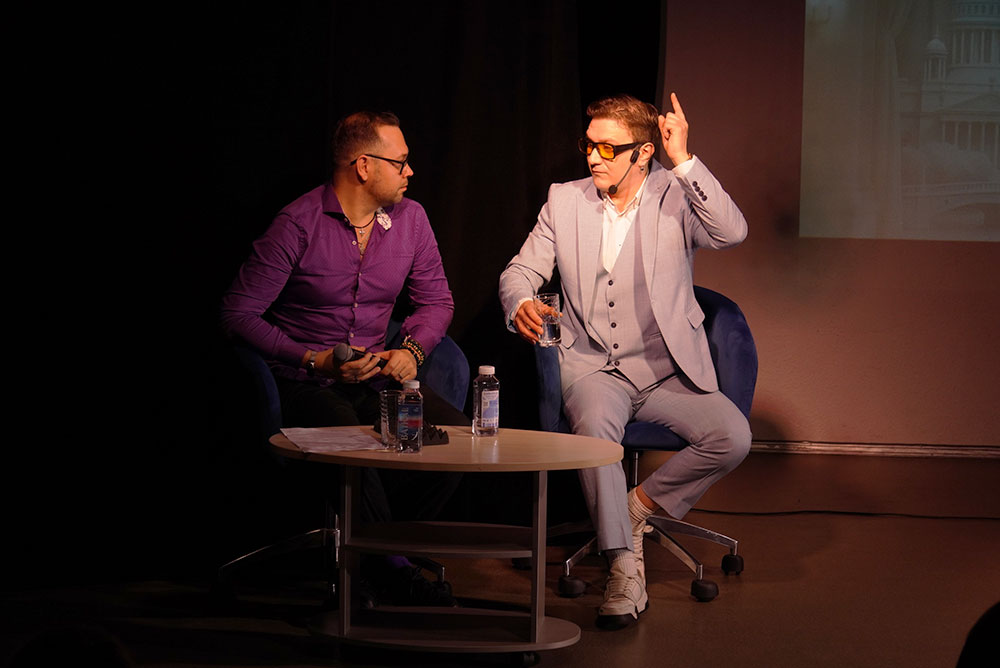 На творческой встрече были показаны фрагменты из спектаклей "Женитьба" по пьесе Николая Гоголя (Театр "Комедианты", реж. Михаил Левшин), "Гроза" по пьесе Александра Островского (Театр на Васильевском, реж. Владимир Туманов), "Борис Годунов" по произведению Александра Пушкина (Театр на Васильевском, реж. Руслан Нанава), "Оскар" по пьесе Клода Манье (Театр на Васильевском, реж. Тадас Шимилёв) и "Вирус Остапа" (Культурно-досуговый центр "Максим", реж. Максим Головчанов).
