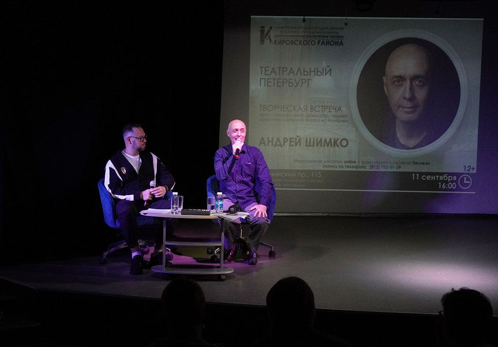 11 сентября 2025 года в Библиотечно-культурном комплексе им. А. В. Молчанова (Ленинский пр., д. 115) в рамках проекта "Театральный Петербург" состоялась творческая встреча с артистом театра и кино, режиссером, педагогом, артистом Молодежного театра на Фонтанке Андреем Николаевичем Шимко.