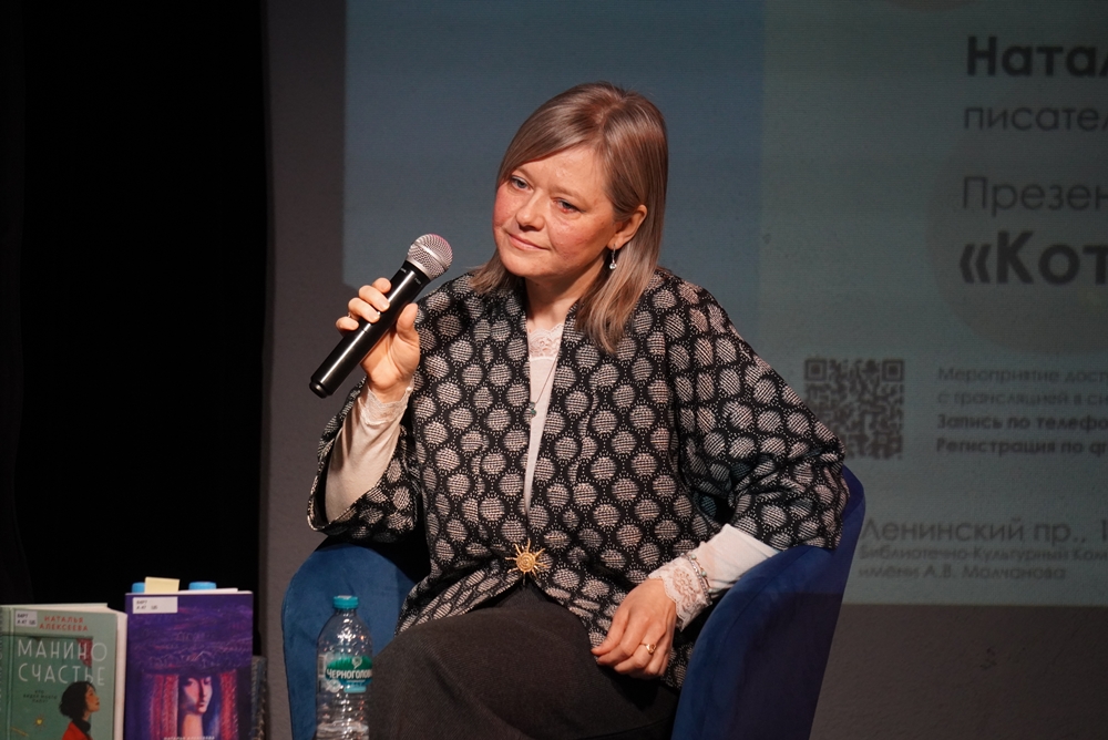 Конечно, главным событием вечера стала презентация новинки - сборника "Кототерапия", вышедшего в декабре 2025 года. Наталья Алексеева рассказала историю создания этой книги, которая уже успела стать настоящим подарком для ценителей доброй литературы. Зрители с удовольствием слушали отрывки в исполнении автора. Особый шарм книге придают иллюстрации художницы Софии Е., которые делают издание ещё более живым и атмосферным. Помимо "Кототерапии", речь шла и о других работах писательницы: поэтическом сборнике "Лавандовая книга", семейной саге "Манино счастье" и невероятно успешной "Северной азбуке", которые никого не оставляют равнодушным.