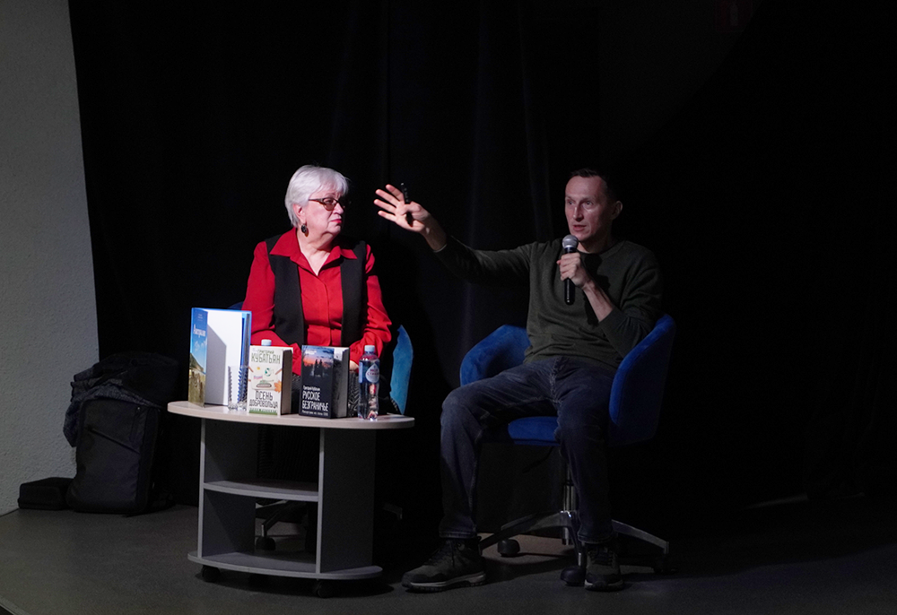 Встреча прошла в очень теплой и дружеской атмосфере - Григорий Степанович оказался прекрасным рассказчиком, умеющим говорить о сложных вещах просто и искренне. Зрители долго не отпускали автора и задавали множество вопросов: о его путешествиях, о специфике работы военкора, о быте на передовой и о той помощи, которую оказывают добровольцы. В зале царила атмосфера доверия, участники делились личными переживаниями и впечатлениями от услышанного.