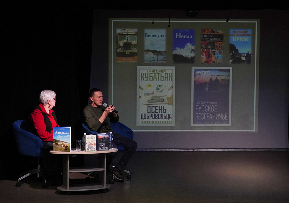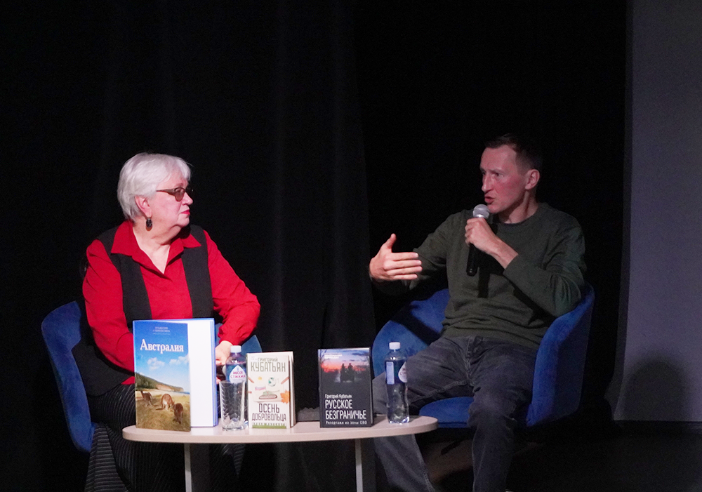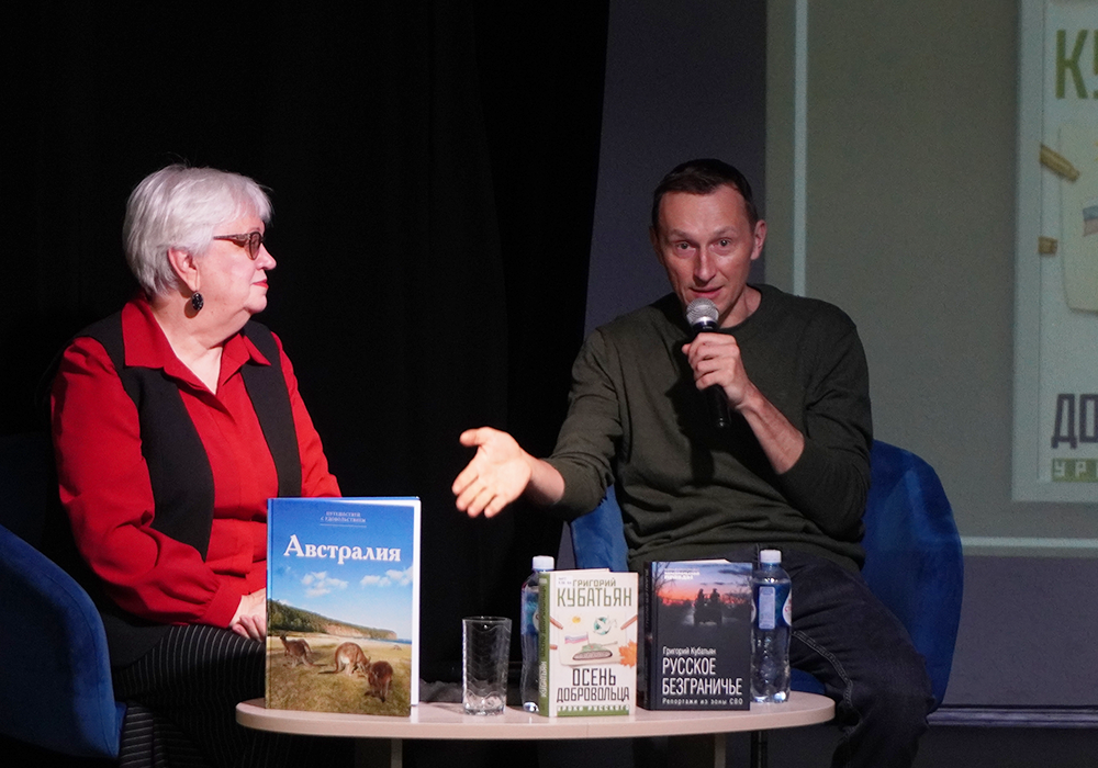 Особый интерес у слушателей вызвал рассказ о другой книге - "Осень добровольца". Григорий Кубатьян поделился, что это очень личная история, в которой он постарался дать ответы на вопросы, которые чаще всего ему задают: почему преуспевающий писатель и путешественник, объездивший полмира, решил стать добровольцем. Это откровенное повествование о внутренних мотивах, выборе и долге.