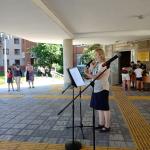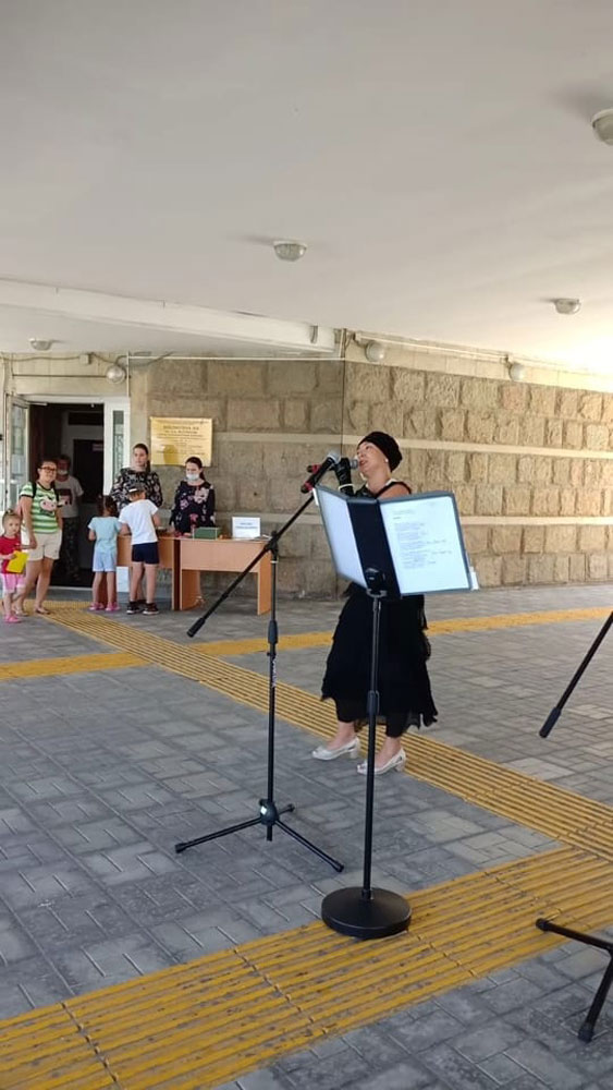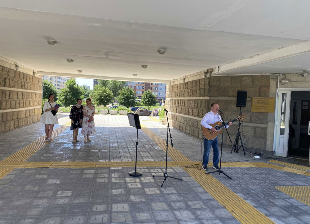 Руководитель студии "Стихи на струнах" Сергей Голуб продолжил концерт, а творческий дуэт "НиК" в составе Ольги Калиниченко и лауреата международных конкурсов Валерии Ни завершили акцию.