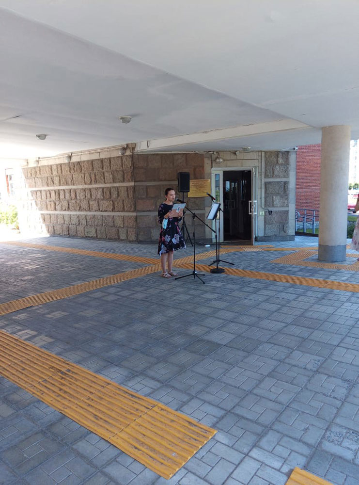 Взрослые и дети слушали стихотворения, написанные в годы Великой Отечественной войны поэтами, ушедшими на фронт и поэтами, оставшимися в осажденном городе… Стихотворения Ольги Берггольц, Юрия Инге, Константина Симонова, Анатолия Молчанова, Юлии Друниной и отрывки из прозы Михаила Шолохова и Бориса Васильева сегодня были исполнены сотрудниками библиотеки.