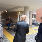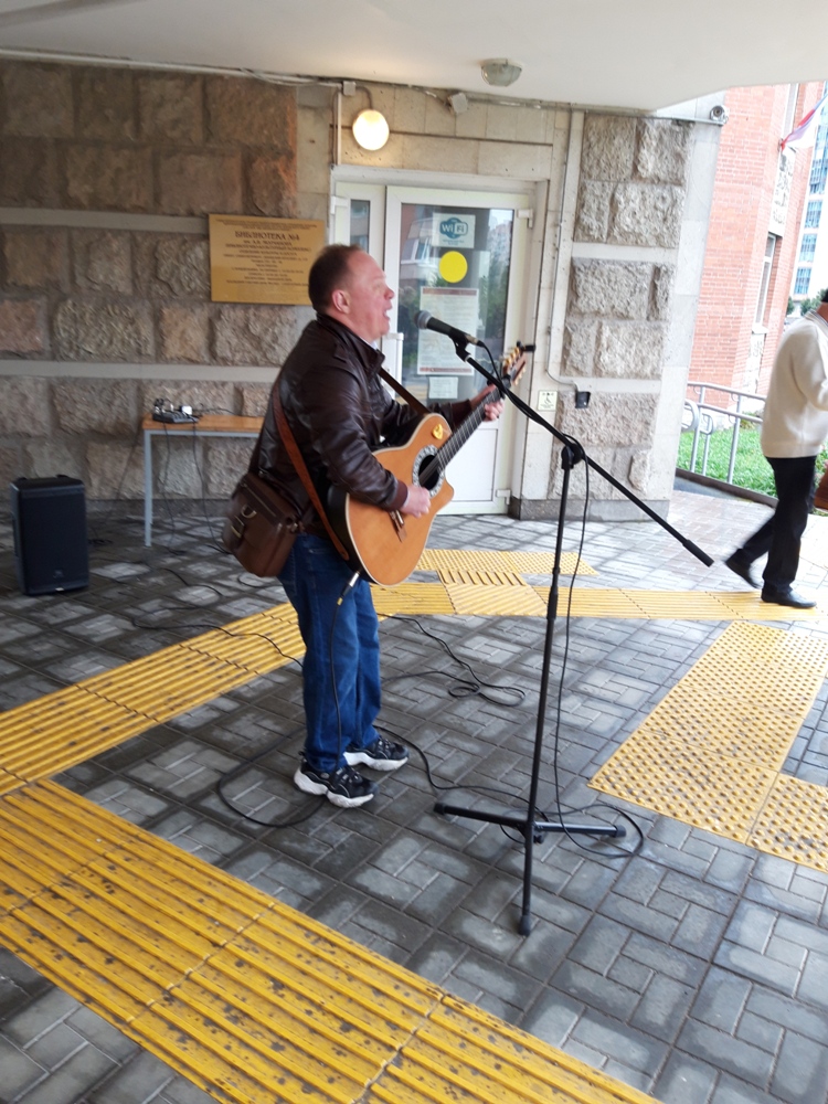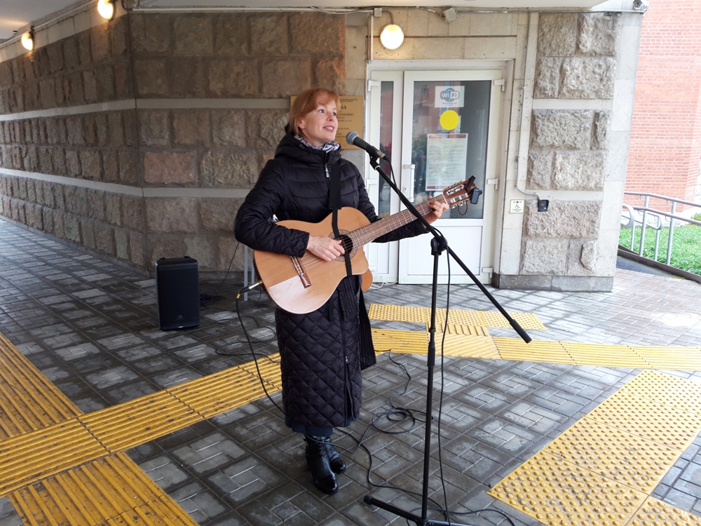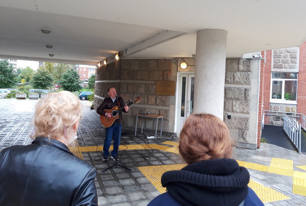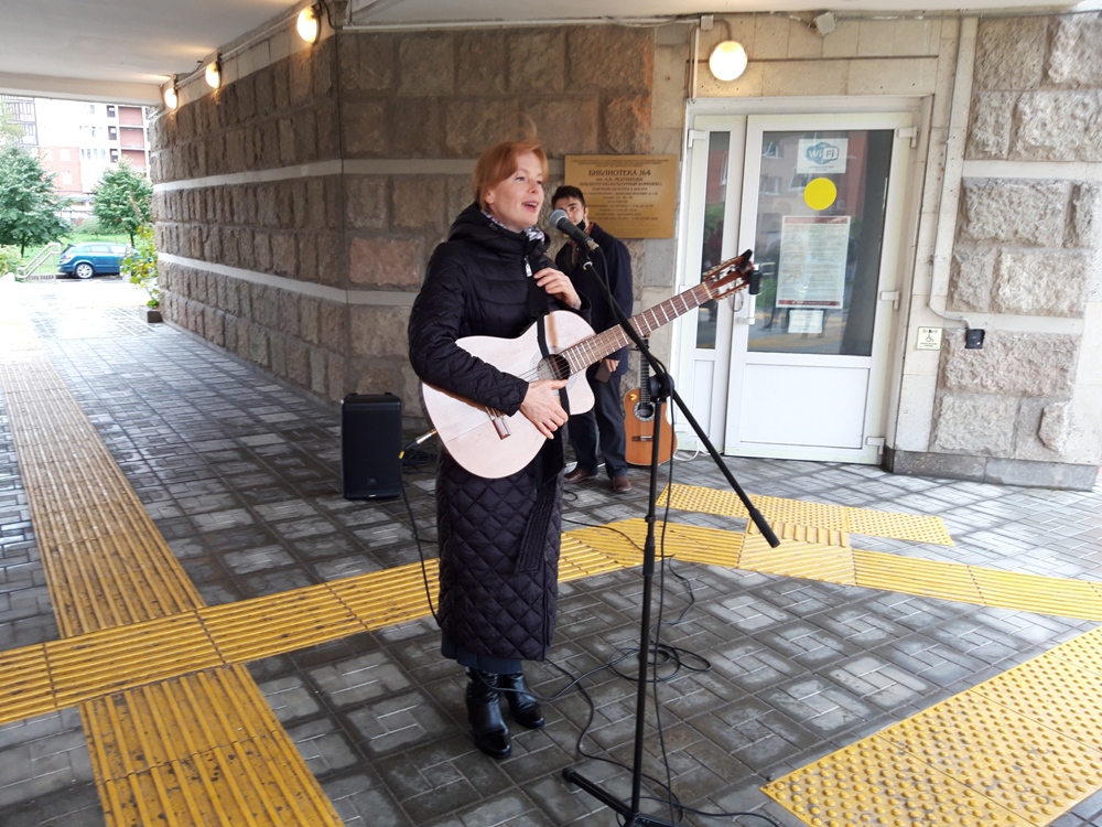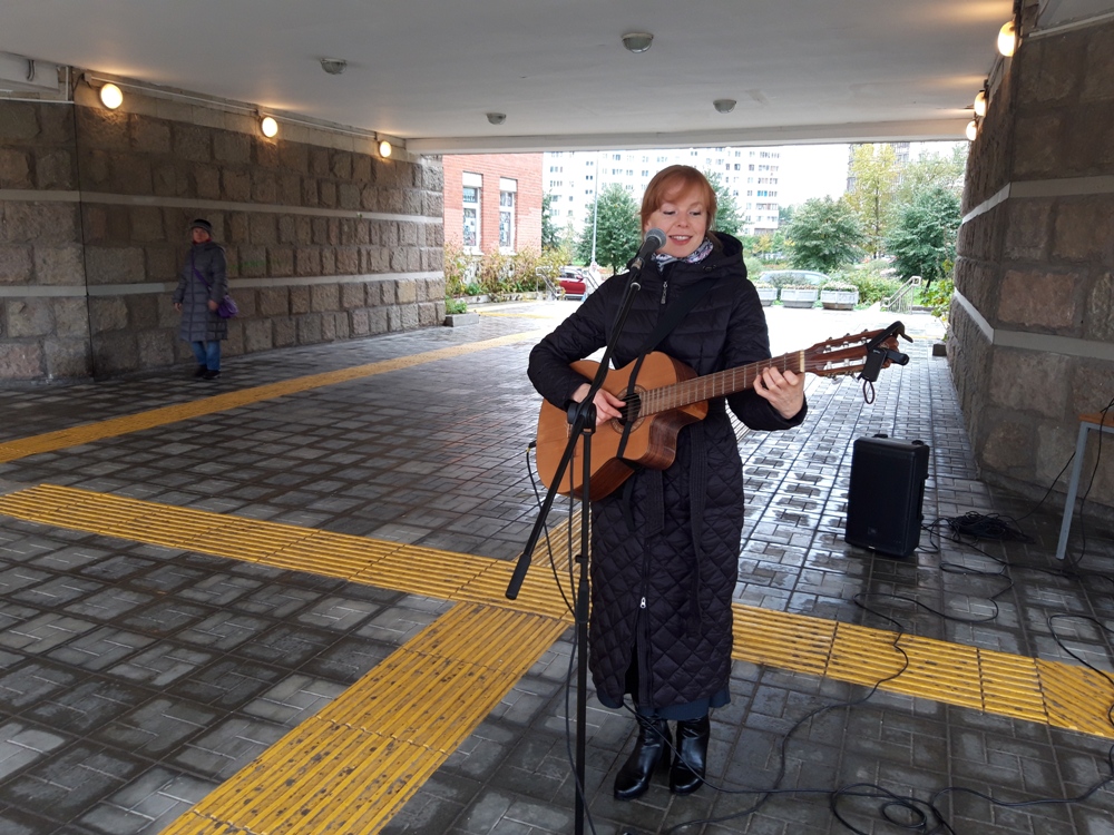 В программе прозвучали стихи и песни, посвященные туризму и популярные советские и авторские песни в исполнении участников творческого объединения "Стихи на струнах". Руководитель объединения Сергей Голуб очень нежно и одухотворённо исполнил песню Булата Окуджавы "Виноградная косточка", поэтесса Надежда Ораевская прочла стихотворение "Неудавшийся променад". Осеннего настроения добавило выступление композитора Ирины Морозовой-Оренбургской, которая исполнила песню "Осенний кот", а попурри на песни советских композиторов никого не оставило равнодушным. И хотя погода на улице выдавала грустные дождливые нотки, зрители получили заряд бодрого настроения, одарив исполнителей бурными аплодисментами.