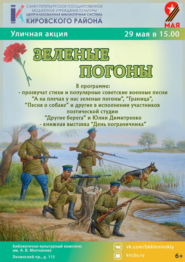 29 Мая в 15.00 в Библиотечно-культурном комплексе им. А. В. Молчанова (Ленинский пр., д. 115) состоится Уличная акция "Зеленые погоны".