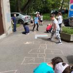 В ходе мероприятия все желающие приняли участие в веселой подвижной игре "Вместе весело шагать" и мастер-классе рисунков на асфальте "Разноцветная радуга".