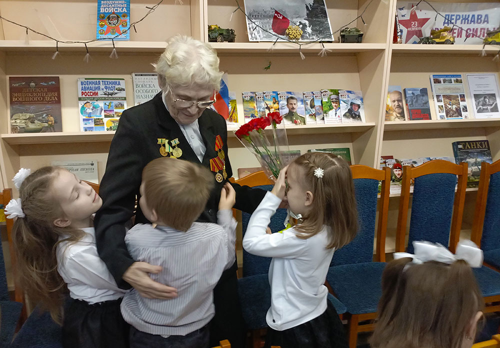 Перед ребятами выступала житель блокадного Ленинграда Блинова Вера Александровна. Она рассказывала о голоде и холоде, о невыносимых условиях жизни, о норме блокадного хлеба, о дороге жизни, которая связывала блокадный город с большой Землей, отвечала на многочисленные вопросы о своем блокадном детстве. Все желающие сфотографировались.