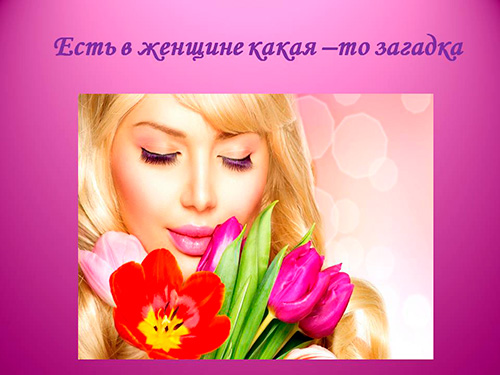 Вы посмотрите информационную презентацию "Есть в женщине особая загадка", поучаствуете в конкурсах, узнаете свой цветочный гороскоп.