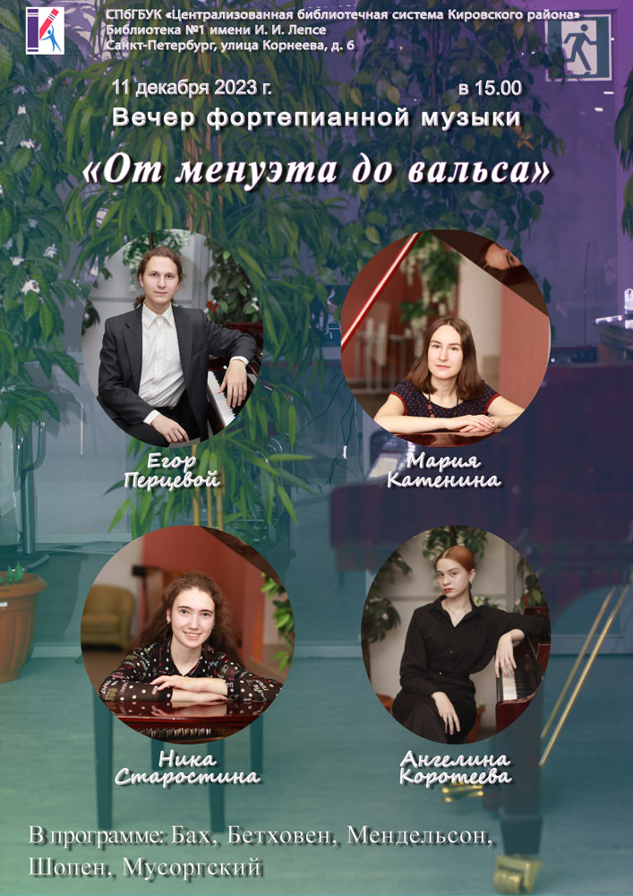 Библиотека №1 им. И. И. Лепсе приглашает всех желающих на вечер фортепианной музыки "От менуэта до вальса".