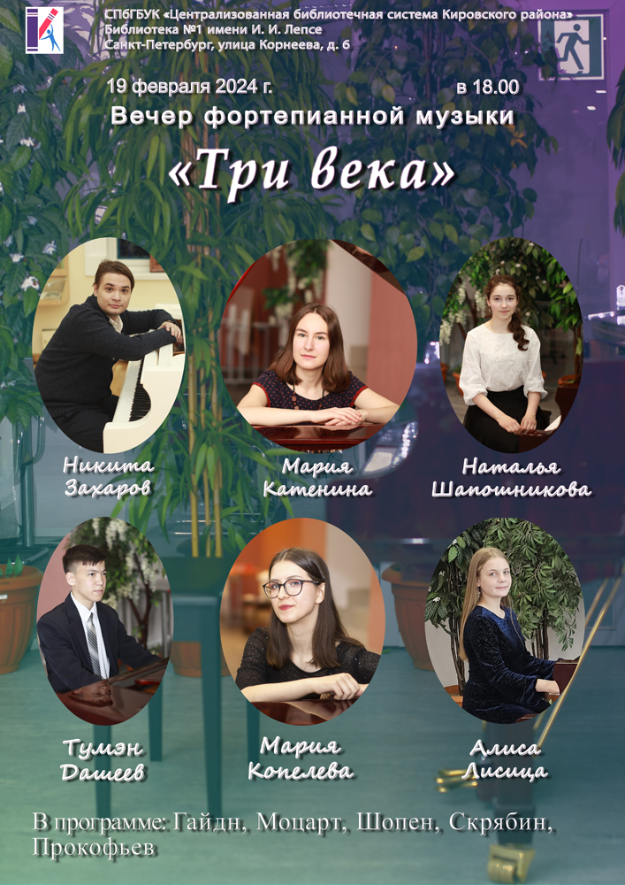 Библиотека №1 им. И. И. Лепсе приглашает всех желающих на Вечер фортепианной музыки "Три века".