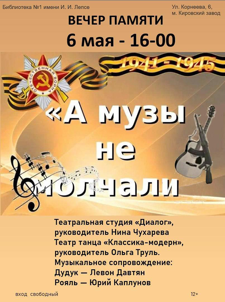 В Библиотеке №1 имени И. И. Лепсе (ул. Корнеева, д. 6) состоится Вечер памяти "А музы не молчали".