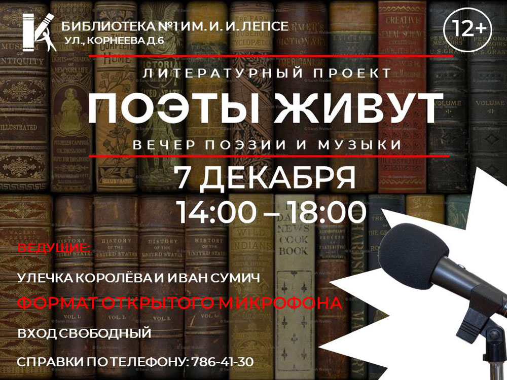 Вечер пройдёт в формате открытого микрофона, где можно будет прочитать стихотворения поэтов, родившихся в декабре, любимых вами поэтов и собственные произведения.