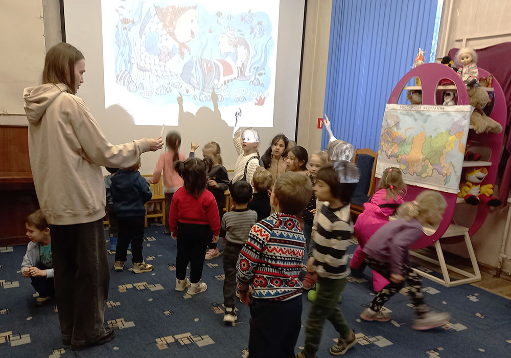 В заключение гостям предложили просмотреть мультфильм. Также была представлена книжно-иллюстративная выставка "Такие звери".