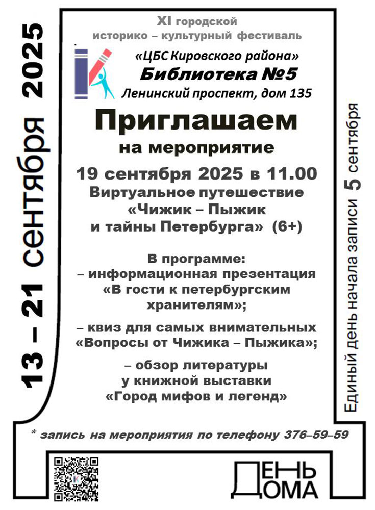 В рамках открытия XI городского историко-культурного фестиваля "День Дома 2025" состоится Виртуальное путешествие "Чижик - Пыжик и тайны Петербурга".