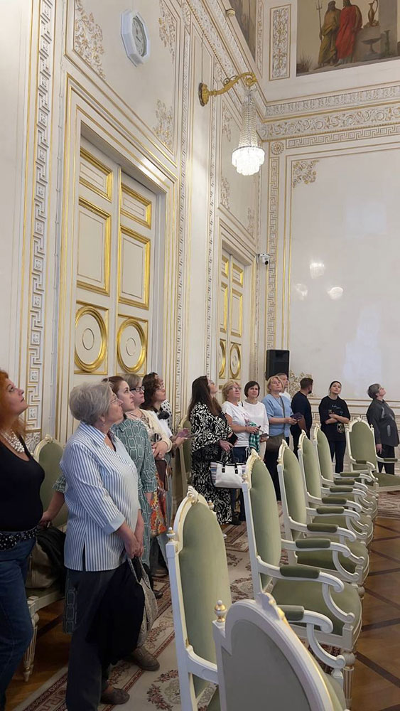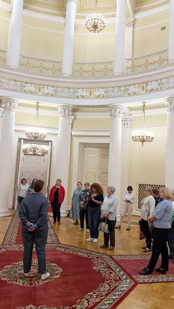 Ключевым событием визита стала экскурсия по парадным залам Мариинского дворца. Это было не просто знакомство с роскошными интерьерами жемчужины Санкт-Петербурга, а настоящее погружение в историю. Участникам раскрыли множество секретов, хранимых этими стенами, что позволило по-новому взглянуть на известные события и буквально прикоснуться к прошлому.
