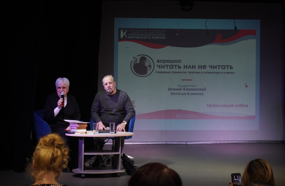 20 февраля в 16:00, в Библиотечно-культурном комплексе им. А.В. Молчанова, Ленинский пр., 115, состоялся воркшоп "Читать или не читать" на тему "Северные горизонты: Арктика в литературе и в жизни". Ведущими-модераторами выступили: русский поэт, прозаик, переводчик, автор десяти поэтических сборников, девяти романов, многочисленных журнальных публикаций - Евгений Юрьевич Каминский и заведующий информационно-библиографическим отделом ЦБС Кировского района Наталья Клюкина.