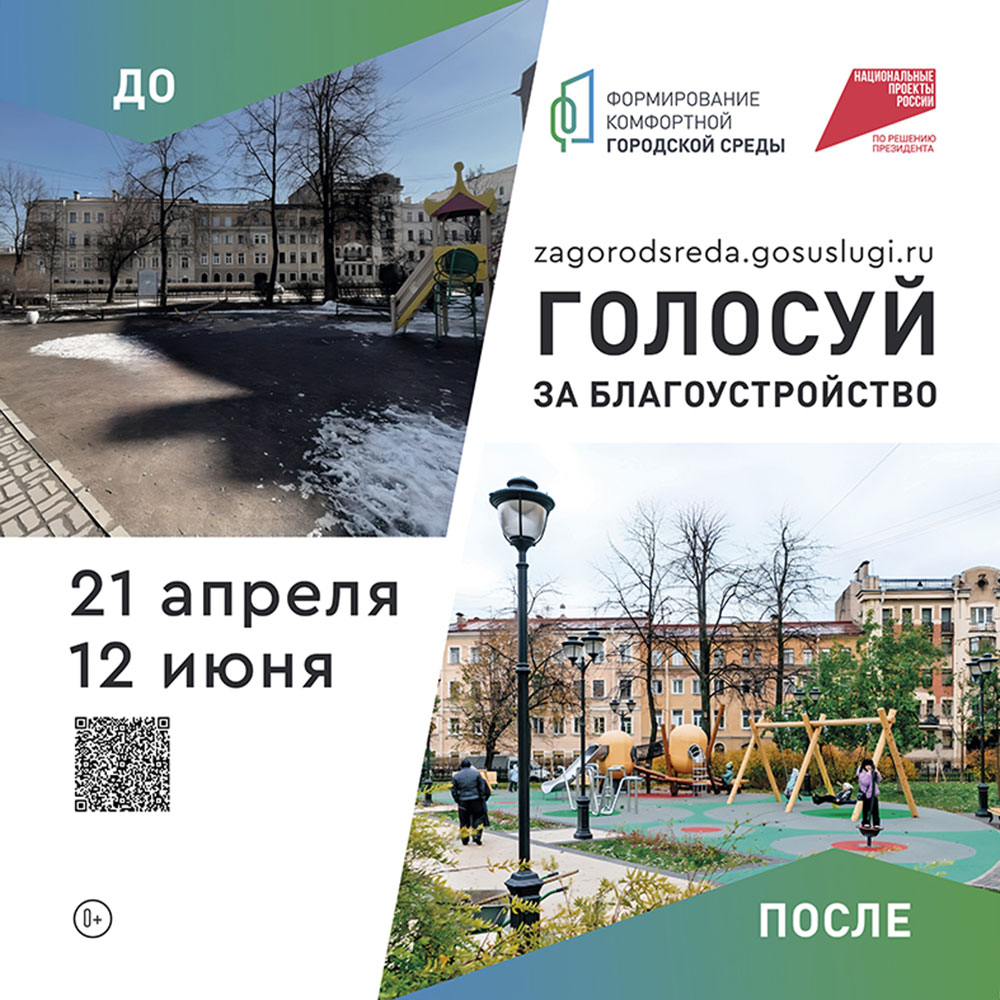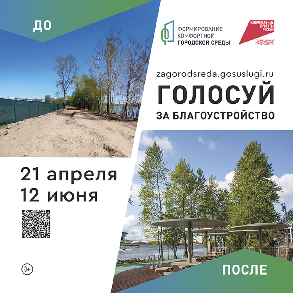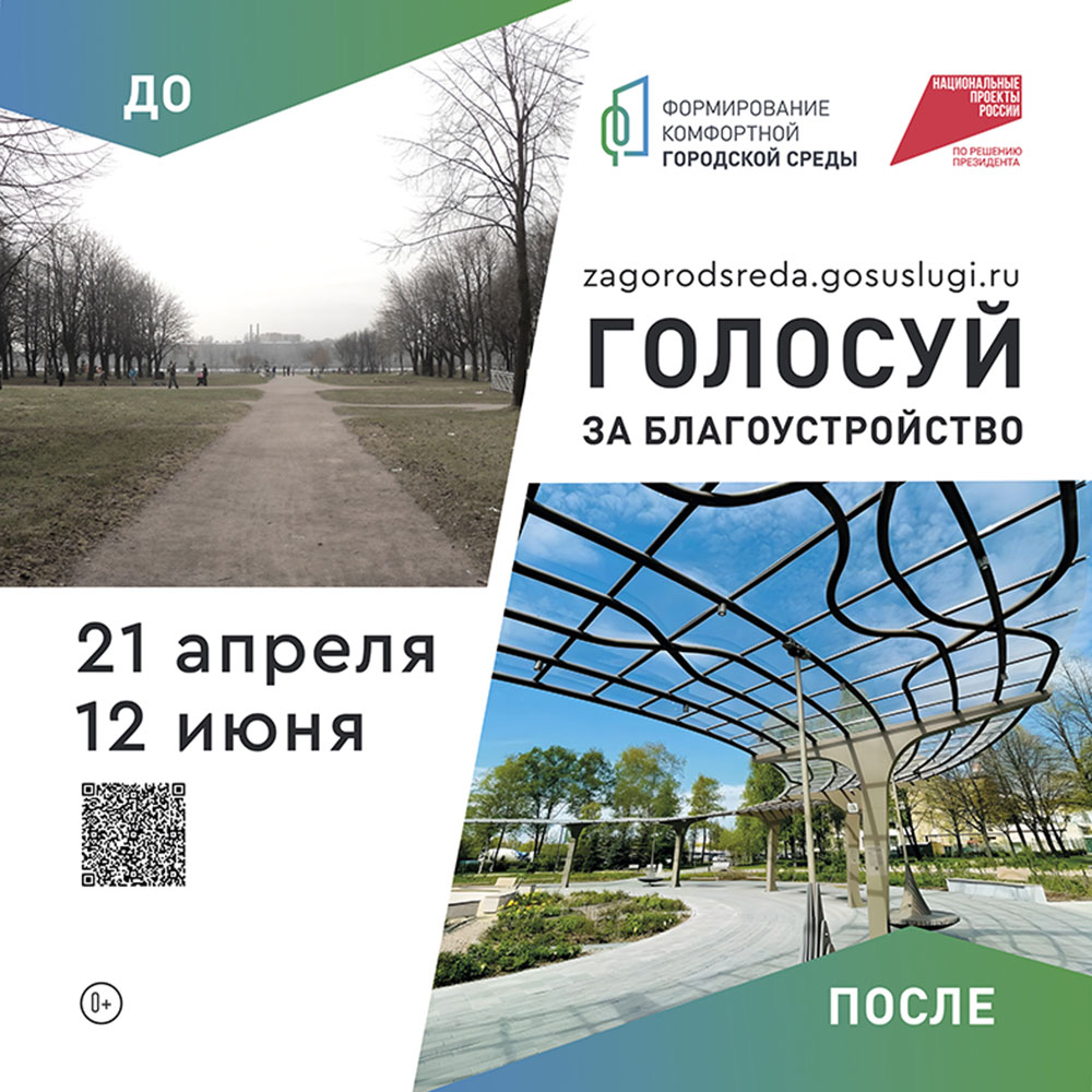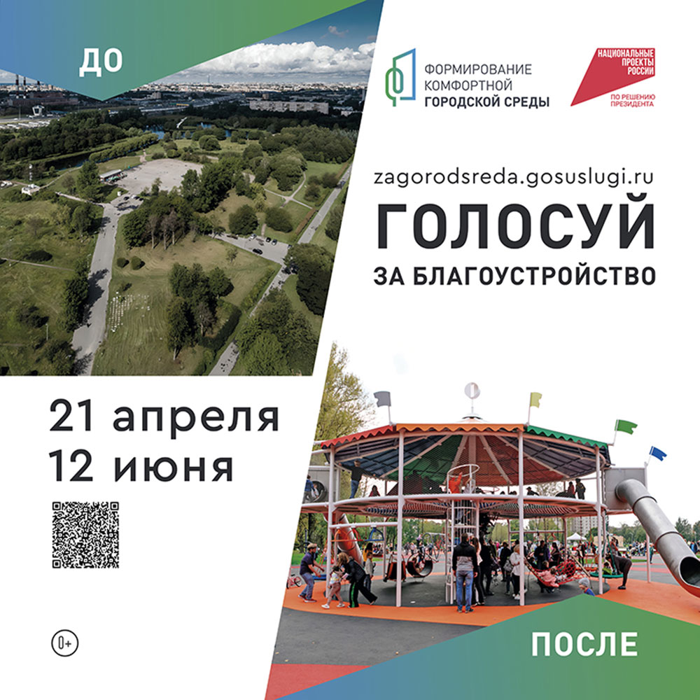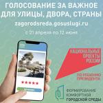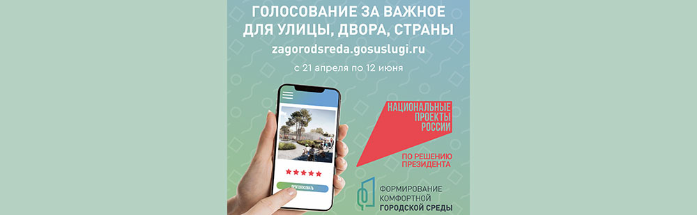 В последней декаде апреля дан старт всероссийскому онлайн-голосованию за объекты благоустройства. На сайте zagorodsreda.gosuslugi.ru каждый горожанин старше 14 лет может отдать свой голос за территорию, где он хотел бы видеть новое благоустроенное общественное пространство.