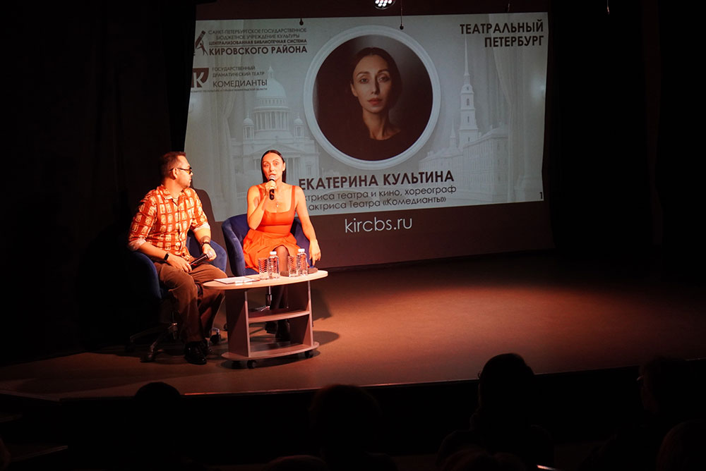 9 октября 2025 года в Библиотечно-культурном комплексе им. А. В. Молчанова (Ленинский проспект 115) в рамках проекта "Театральный Петербург" состоялась творческая встреча с актрисой театра и кино, хореографом, актрисой Театра "Комедианты" Екатериной Александровной Культиной.