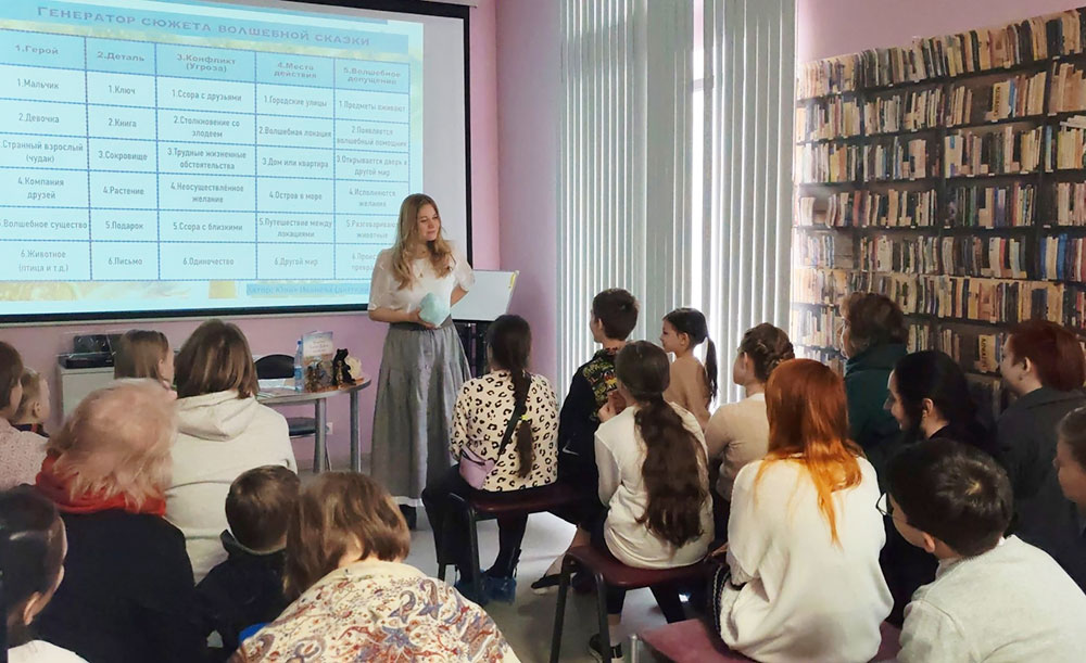 Автор рассказала о творческом процессе, о том, как рождается сказка, как она обретает новую жизнь и становится книгой. А еще участники мероприятия узнали, откуда писатель черпает вдохновение и как с помощью фантазии и воображения можно придумать собственную историю, а помогла в этом чудесная игра "Волшебный мешочек" и замечательный "Генератор сюжета волшебной сказки".